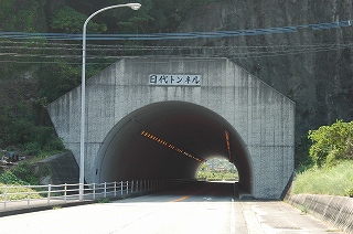 津久見市日代地区の小さな岬をショートカットする新しいトンネルで、旧道も追越禁止の黄色線が引かれたまま2車線が確保されて現役で残っている。