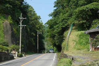 | 県道山香国見線の杵築市旧大田村内に存在した小隧道で,現在は道路改良により切通しとなっている。 切通の法面にはかつて隧道内に安置されていたという石仏が残されている。昭和49年の航空写真ではすでに切通しとなっているので,相当昔に撤去されているものと考えられる。 切通の東側,ダム湖畔へ入っていく道路との分岐には,ため池及び道路改修の記念碑が建てられており,その建立年から推測すると大正年間の建設ではないかと思われる。 |