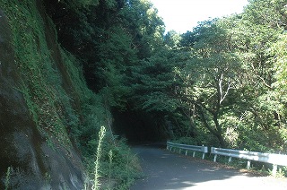 | 海岸に迫る山の中腹を縫って走る大分県南広域農道のトンネルだ。 最近の広域農道といえば2車線で快適に走れるというものがほとんどだが,この広域農道の北半分はおそらく5m幅員の1車線道路でカーブもきつく,路面には枯れはや落石,台風で折れた枝などがたっぷり転がっているという「らしからぬ」ものである。 |