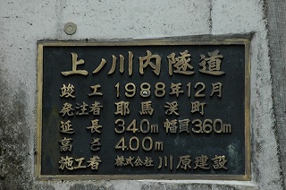 | 本耶馬溪町から県道2号を遡り,さらに支流に分け入った先にあるトンネルで,改修を受けたものなのか新設されたものなのかは不明だが,山の集落からメインの谷筋へ抜ける小さなトンネルである。 1988年というのが改修年なのか,新規に建設された年なのかはわからない。 |