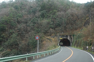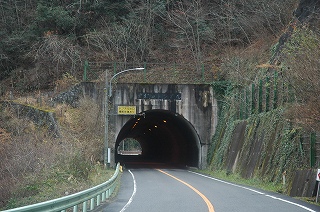 八塔寺川ダムの付け替え県道のトンネルで,南側はダム湖を渡る橋に通じている。その橋に梵鐘が飾り付けられているのは,八塔寺というのと関係があるのだろうか。関係ないような気がするけど。何かいわれがあるのは間違いないだろう。