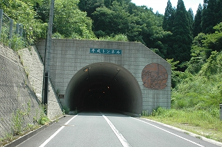 峠の県道283号バイパスとして建設された農道トンネル。 ちゃんと峠の名前があるのに,なぜこんな名前にしたのかと思う。 2006.6.18時点では旧道は通行止めであったが,1年後の2007.6.17に通ったところ旧道(県道だって!)の通行が可能となっていたので通ってみた。 |