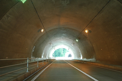 | 2009年6月19日に供用開始された主要地方道徳山本郷線の改良トンネル。 防災機能もあわせて作られたトンネルのはずだったのだが、国道187号から入ってすぐの箇所で落石があり通行止め(09年7月12日)である。 そこまでひどい雨ではなかったのだが、災害というのはいつどこで起こるかわからないものだ。 |