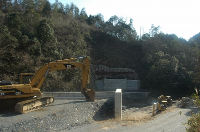 北側にコンクリートで補強工事がされていて,多少工事が始まっているんだなあという感じがするが,穴が開いているわけではない。旧美川町側も残土で均されて,準備はできているが経本格的な工事にはしばらくかかりそうな雰囲気がある。(07.03.25) 既に貫通し,ポータルの工事中のようだ。橋の上部工も完成している。平成20年度末くらいには開通しそうな感じである。(08.01.06) ※開通予定はH20.12末ということのようだ。(中国新聞報道) |