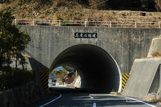 立派なロックフィルダムである,屋代ダムの脇にうがたれた隧道。