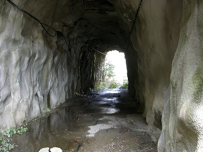 県道ファンのなるなるさんから情報提供いただきました。現道,湯ノ瀬隧道のすぐそばに残る廃隧道です。ごらんのとおり,素掘りに吹き付けただけで扁額などはありませんので,延長や幅員から山形の廃道様方「隧道リスト」にある江舟口第一隧道ではないかと判断しました。 中に電話線が通っているようなので,しばらくはこのままなのかもしれません。湯ノ瀬隧道の竣工が1979年だそうですから,高さ・幅員制限標識は25年以上も放置されているはずですが,ガードレールとともに意外ときれいです。 ※でもやっぱり夏になると藪が生い茂っていました。 上写真:長門峡側 中左:長門峡側(内部) 中右写真:阿武川ダム側(内部) 下写真:阿武川ダム側 |