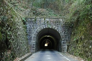 山口県道15号川西隧道の上部にある旧隧道。岩国から玖珂方面への一方通行となっており,かつ抜け道ともなっている。 この県道15号の欽明路ルートは,「玖珂村から錦帯橋に至る4里33丁18間巾3間幅の道路改修は明治23年に県が行った」もので,その後大正時代になり,「翌6年には祖生,玖珂,高森,米川,川越,師木野,岩国の7か町村は第4号国道線の道祖峠隧道工事の促進を期するための期成同盟会を作った」(岩国市史 下線筆者)とあるので,隧道もそのころに建設されたものだろう。ポータルこそ石組みであるが,内部はコンクリートブロック積みであることから工事は昭和初期までかかったものかもしれない。 しかし,昭和初年の地形図ではすでに,国道は現ルートを通っているように見え,国道隧道としての時期があったものかどうかはいまだ不明だ。 ※大正3年の地形図では国道であったとのことです。その後,県道110号岩国周東線となり欽明路道路が無料化された際に,路線名を現在の県道15号へ譲ったうえで県道128号柱野停車場線へさらに県道1号岩国大竹線を経て現在へ至る。ということのようです。結構紆余曲折をへて今の地位に落ち着いたみたいですね。また,「さいがたお」という呼び方をされることもあるそうです。(06.09.04補記 情報提供 かずくん 様) |